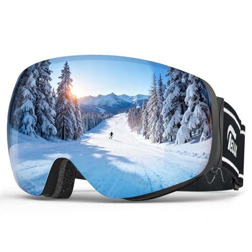 眼鏡対応 スノーボード ゴーグル メンズ レディース UV400保護 OTG広視野球面レンズ 二重曇り止めレンズ 滑り止めベルト 紫外線遮断 大視界 ヘルメット対応 ベンチレーション 軽量 耐衝撃 ski goggles 男女兼用 登山 防風/防雪/晴れ/曇り/全天候対応 (黒枠・シルバー(磁石))の詳細